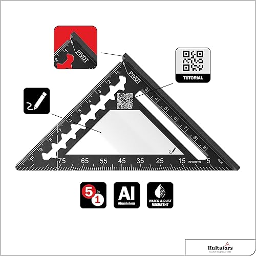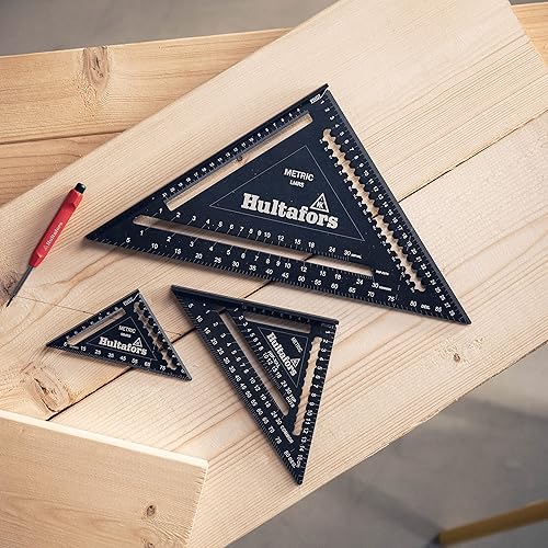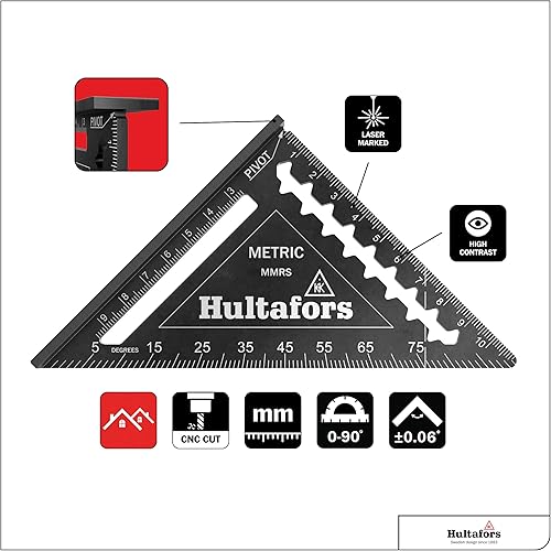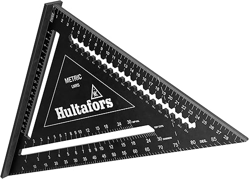 5-in-1 Anschlagdreieck 180mm I Hultafors I Zimmermannswinkel CNC gefräst aus Aluminium I Zimmererwinkel zum Anreißen, Messen & Zeichnen I Inkl. Umrechnungstabelle I 257010