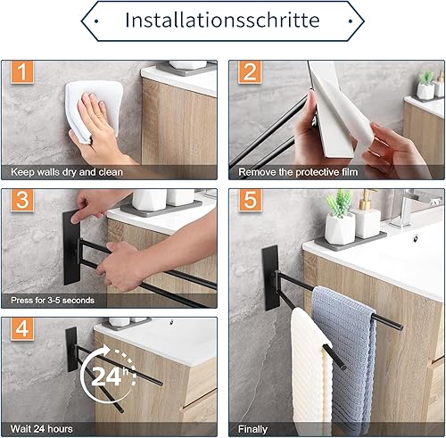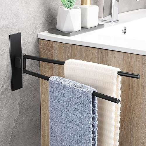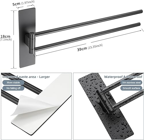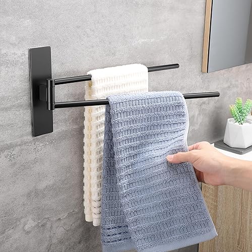 OETAMS Handtuchhalter Ohne Bohren 180° Schwenkbar Handtuchstange Selbstklebend Handtuchhalter 304 Edelstahl Badetuchhalter Doppelter Habdtuchhalterung Gebürstet Silber