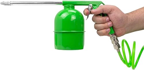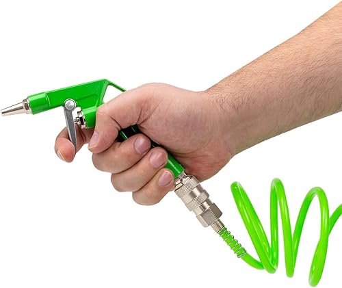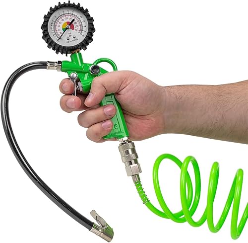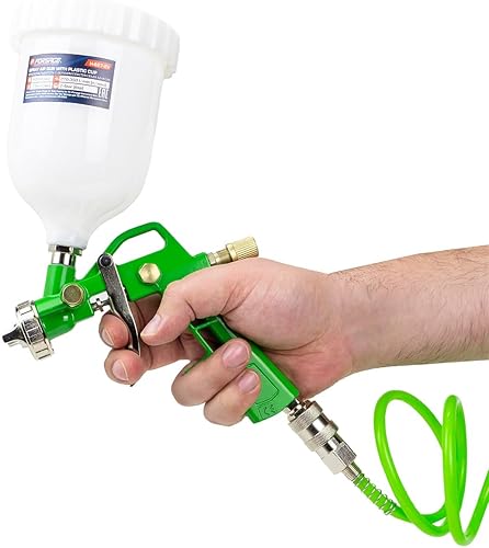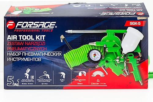 ForsagePol Druckluft-Werkzeugset 5-TLG Blaspistole, Reifenfüllmessgerät, Farbspritzpistole mit Fließbecher 600ml und PA-Spiralschlauch