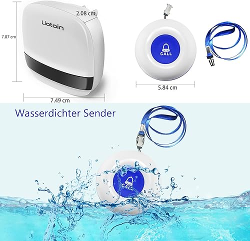 LIOTOIN Notrufknopf für Senioren Notruf Alarm Knopf Kabellose Hausnotruf Senioren SOS Alarmanlage Set 3 Sender 1 Empfänger Krankenpflege …