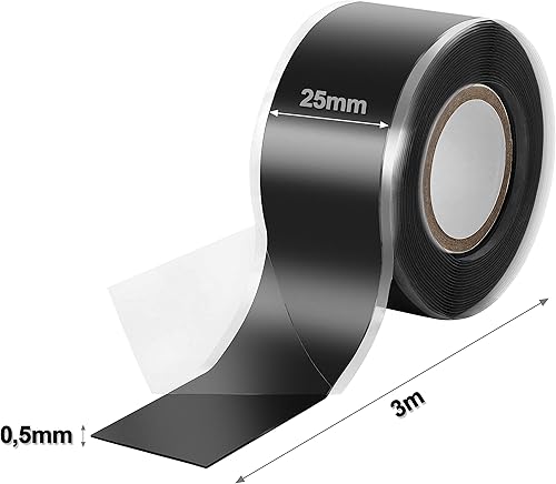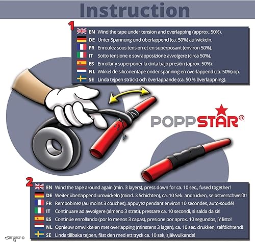 POPPSTAR selbstverschweißendes Silikonband zur Reparatur, Isolierung & Abdichtung (Strom, Wasser, Luft) Isolierband 3m lang, 50mm breit, schwarz