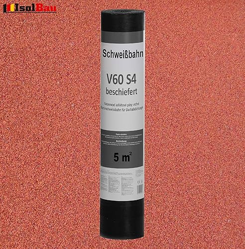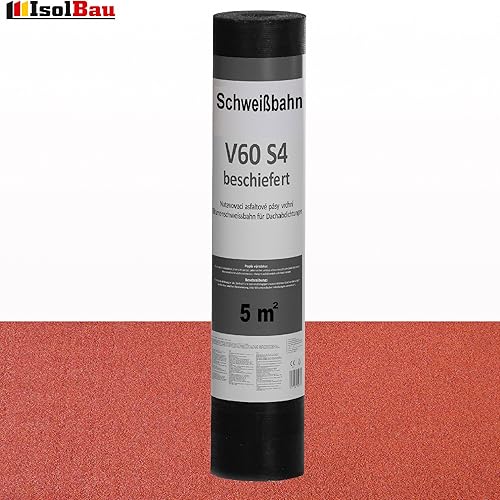 Isolbau Schweißbahn V60 S4 beschiefert - Bitumenbahn mit Glasvlies-Einlage zur Dachabdichtung - Rot, 1 x 5 m² Rolle