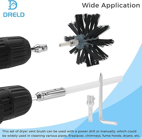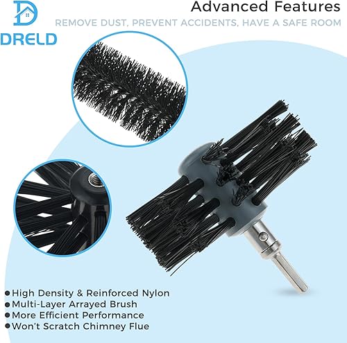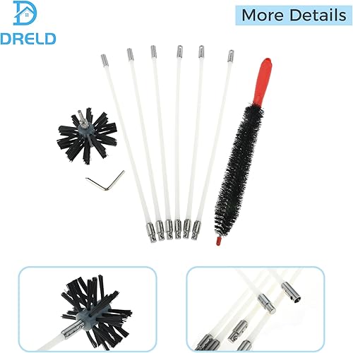 DRELD 10PCS Kaminbürsten-Kit Kaminbürste Stange Set Schornsteinbürsten-Set Kanalentlüftungs Reinigungsset mit 6 Flexible Stangen 410mm/Pro, 1 Bürstenkopf Ø100mm, 1 Lange Bürste, 2 Zubehör