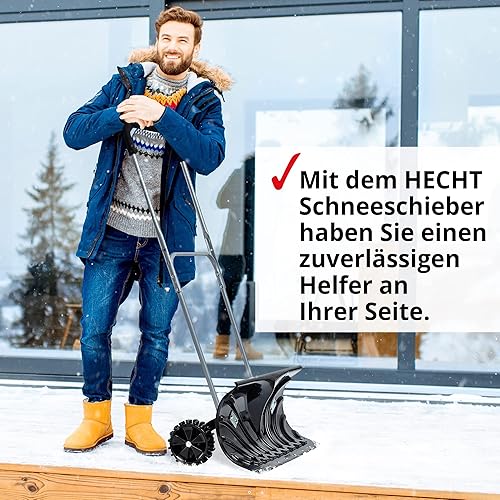 HECHT Großer Schneeschieber mit ergonomischem Stahlstiel – Schiebekante mit Stahlprofil – Schaufel im Winter perfekt – Profi Schneeschaufel mit Rädern jetzt günstig kaufen