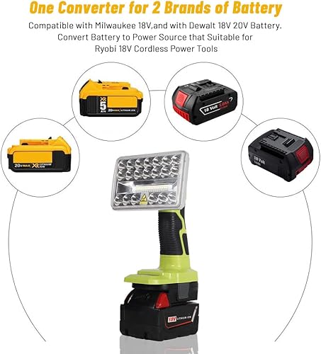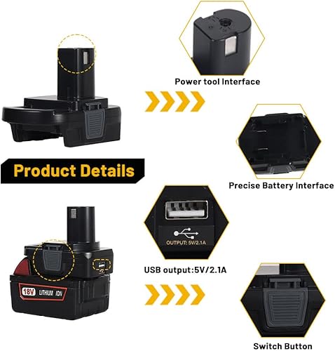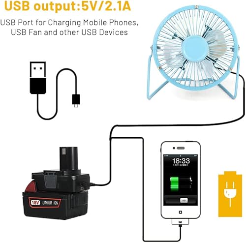 DM18RL-Akkuadapter für Ryobi 18-V-Lithium-Akku-Elektrowerkzeuge, Konvertieren mit Dewalt 18 V 20 V oder mit 18-V-Li-Ion-Akku für 18-V-Werkzeuge Stromquelle mit USB-Telefonladegerät