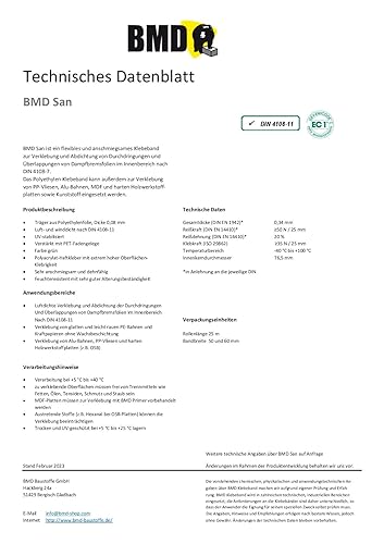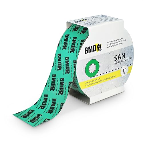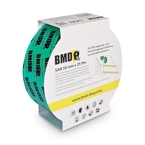 BMD san Klebeband | 10 Rollen | 50mm x 25m | für Dampfsperren & Dampfbremsen |gemäß DIN EN 4108 Teil 11 und ENEV | Profi Qualität Made in Germany