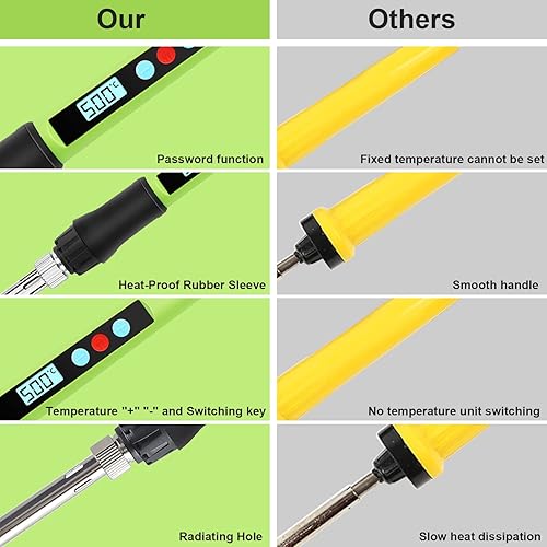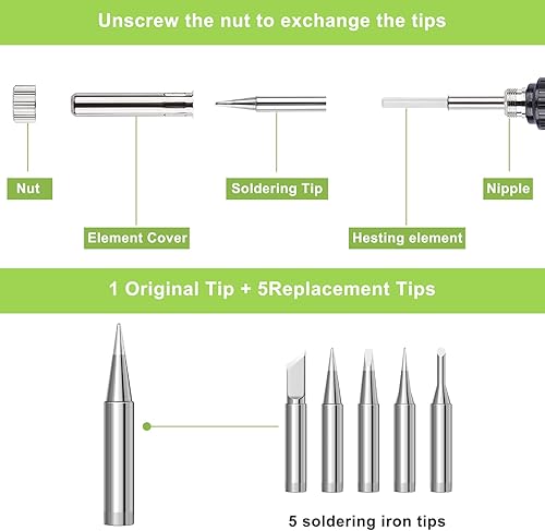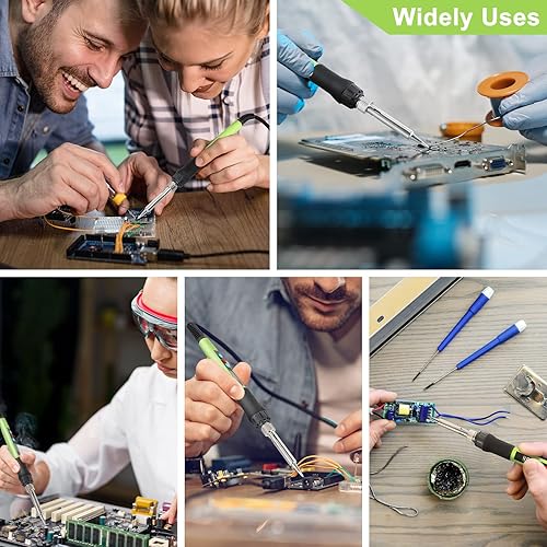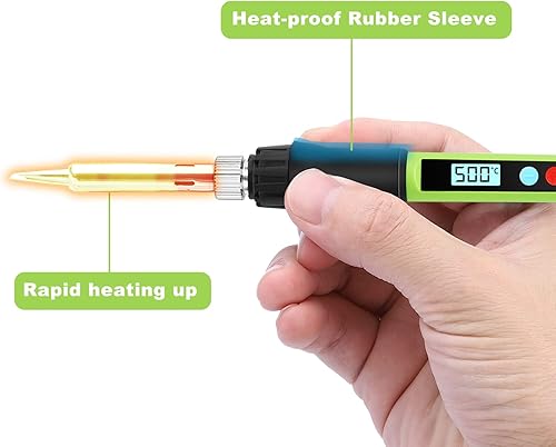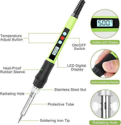 Lötkolben Set, 100W LED Lötkolben mit Einstellbare und Verriegelte Temperaturen 180℃-500℃, mit ON/OFF, 10g Lötdraht, 5 Lötspitzen, Lötkolbenständer, Lötset für Reparatur des Schweißens