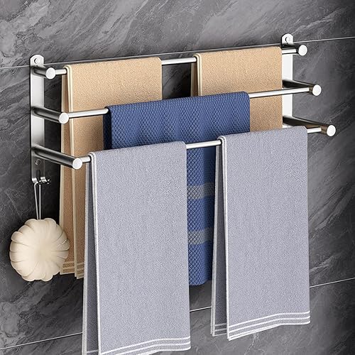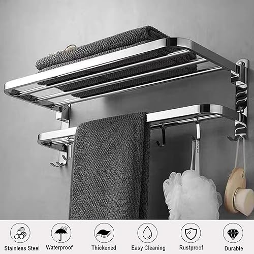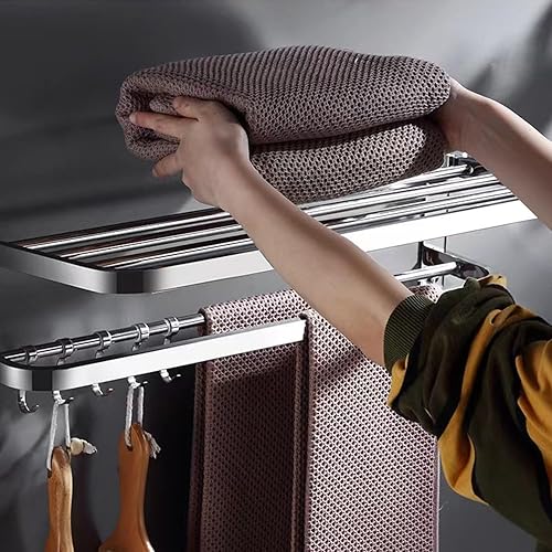 60CM Handtuchhalter Ohne Bohren, Handtuchhalter Stehend, Handtuchhalter Silber Badezimmer Zubehör, Handtuchhalter Bad Selbstklebend SUS304 Edelstahl, Handtuchhalter Wandmontage für Badezimmer Küche