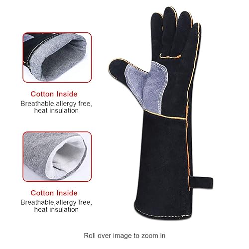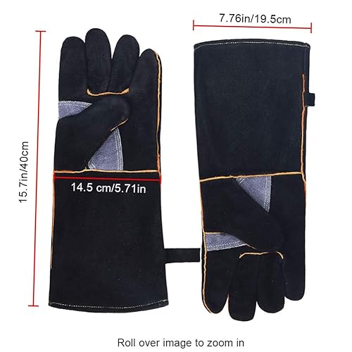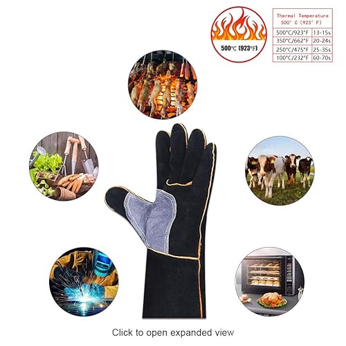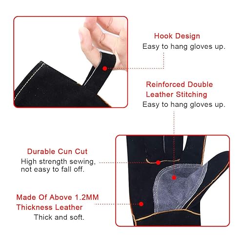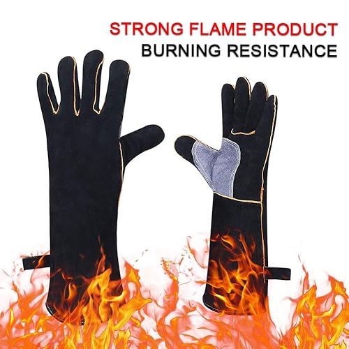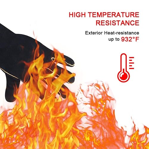 QCWN Schweißhandschuhe, sehr widerstandsfähig, hitzebeständig, feuerfest, mit Kevlar-Nähten, Arbeitshandschuhe für Kamin, Herd, Ofen, Grill, Schweißen, Topflappen, Gartengeräte