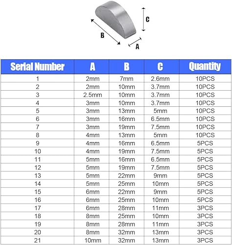 Joyzan 135-teiliges Scheibenfeder-Sortiment, Halbmond-Getriebewellenantrieb, Schwungrad, Keilriemenscheibe, Kurbelbefestigungen, Kurbelwellenschlüssel-Sortiment für mehrere Zwecke