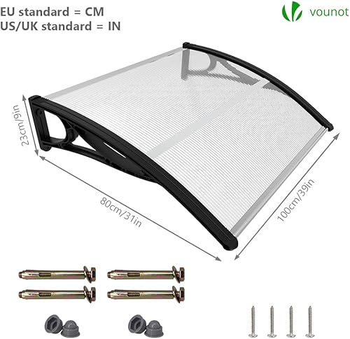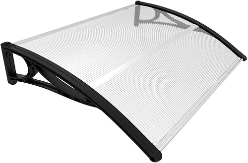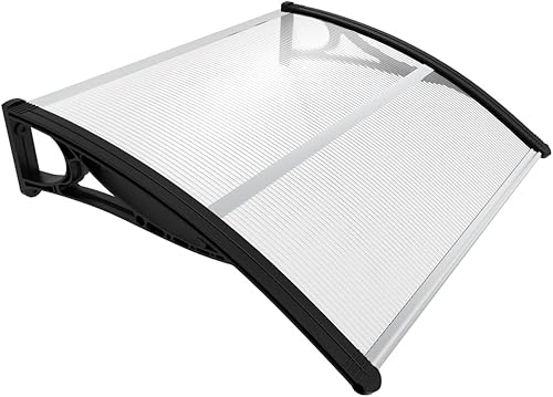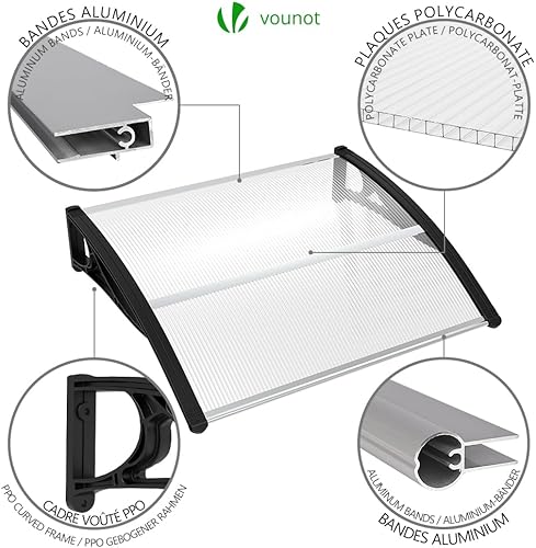 VOUNOT Vordach für Haustür 120 x 80 cm, Überdachung Haustür aus Aluminium und Polycarbonat, Transparentes Pultbogenvordach, Pultvordach