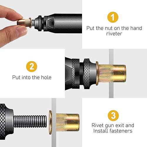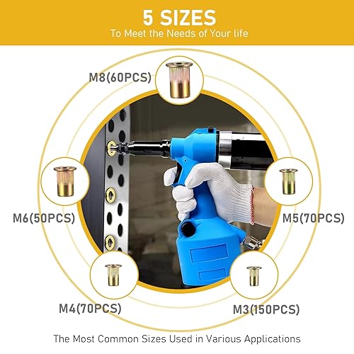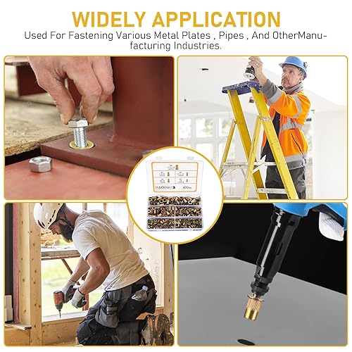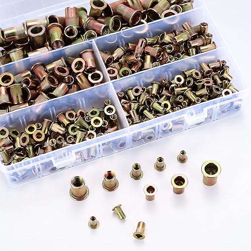 XhjzgcTech 400-teiliges Nietmuttern-Set, Flachkopf-Gewindenieten, Muttereinsätze, Sortimentsset, Kohlenstoffstahl, SAE UNC-Nieten, Muttern, Mutterneinsätze 5#, #8-32, #10-24, 1/4-20, 5/16-18