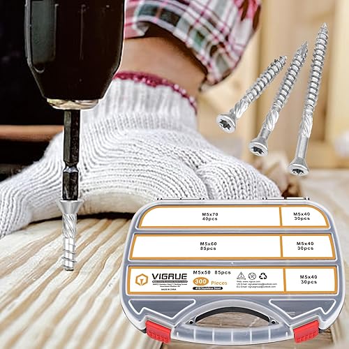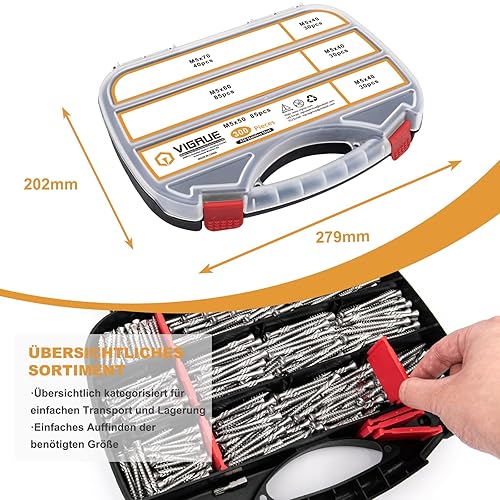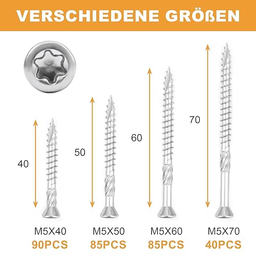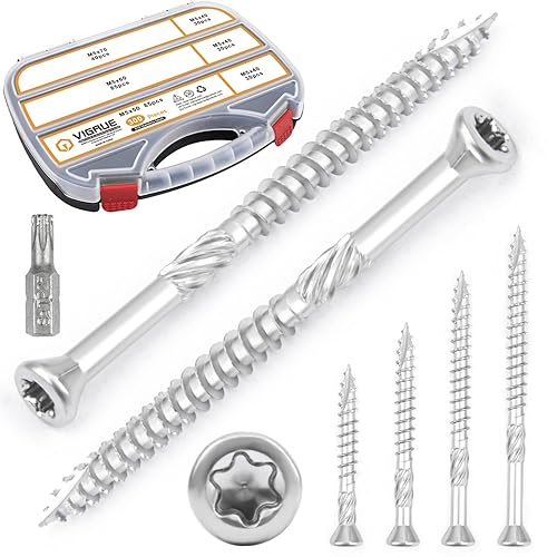 VIGRUE Terrassenschrauben 5x60 300 Stück Dielenschrauben Set 5x40mm, 5x50mm, 5x60mm, 5x70mm, Edelstahl Gehärtet C1 Schrauben, Torx 25, inkl. Edelstahl Bit