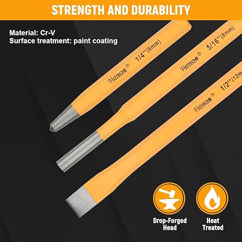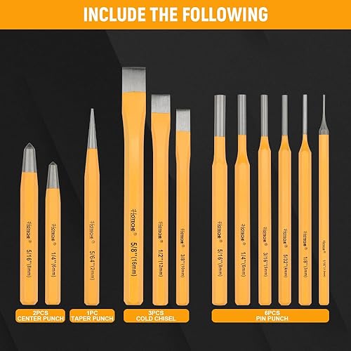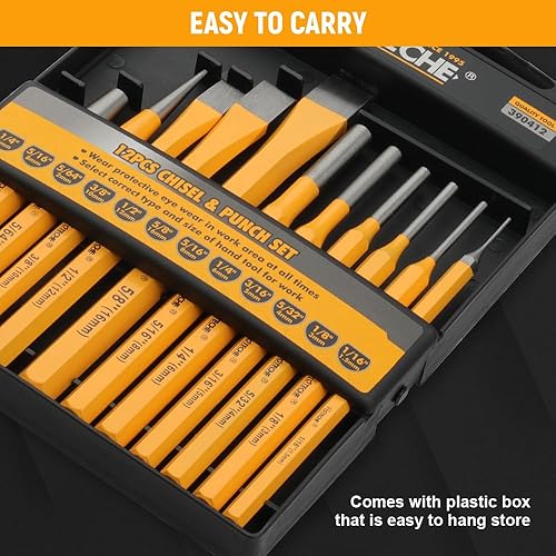 HOTECHE 12-teiliges Durchschlag- und Splintentreiber-Set, aus 40CRV-Stahl, in gelber Farbe, mit schwarzer Kunststoffbox