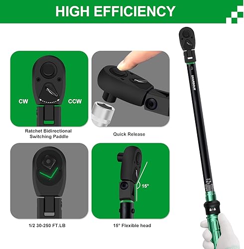 Uharbour Drehmomentschlüssel Set 1/4 & 3/8 & 1/2 Zoll, 3-25Nm, 5-60Nm, 20-230Nm, Drehmomentschlüssel Set für Auto, Motorrad und Fahrrad mit 1/2 3/8 1/4 Adapter, ±3% Genauigkeit, 72 Zähne Ratsche