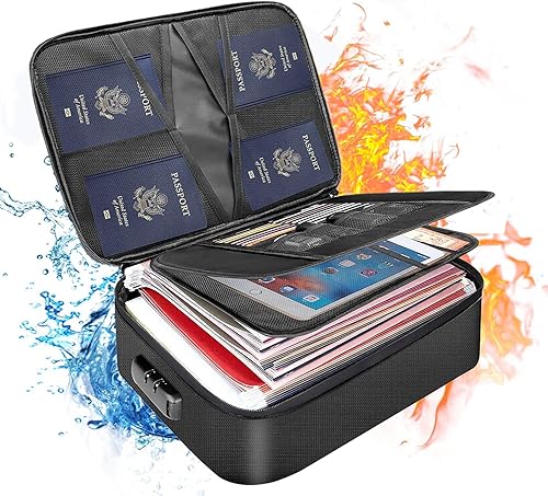 Feuerfeste Dokumententasche mit Schloss,5200°F Verbesserte Wärmeisolierte,Feuerfeste und wasserdichte Aufbewahrungsbox 8-lagigem Akten-Organizer,Tragbare,Sichere Aufbewahrung für Wichtige Dokumente