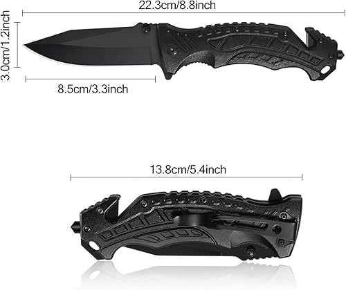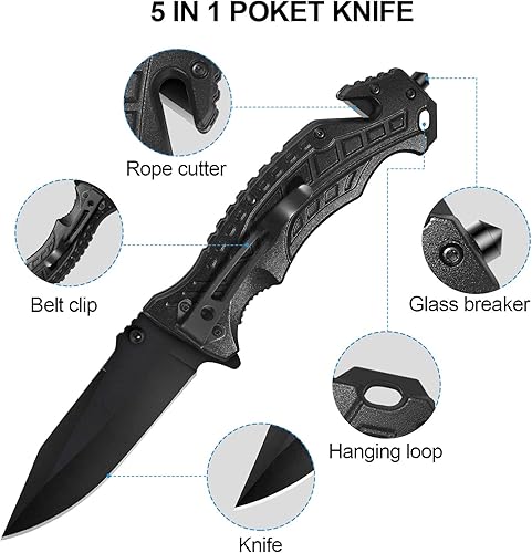 HONZIN Klappmesser Extra Scharfes Taschenmesser 5-in-1 Multifunktion Schwarz Edelstahlklinge Outdoor & Survival Messer