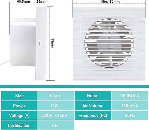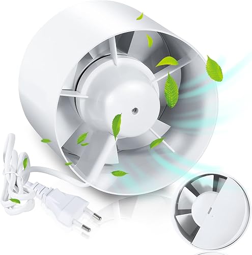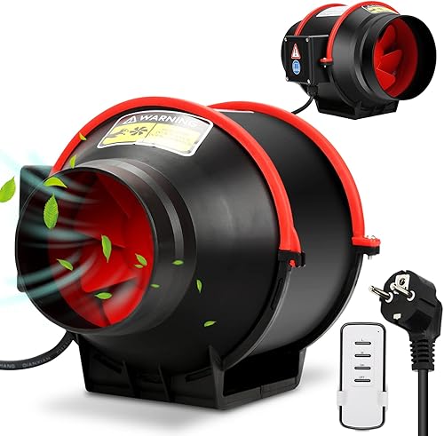 Ikodm 100 mm Einstellbar Rauchabzug Rohrventilator Inline-Kanalventilator, 320 m3/h Abluftventilator Lüfter Leise mit Fernsteuerung, EU-Stecker Für Bad,WC,Küche,Gewächshaus,Zelt,Garage