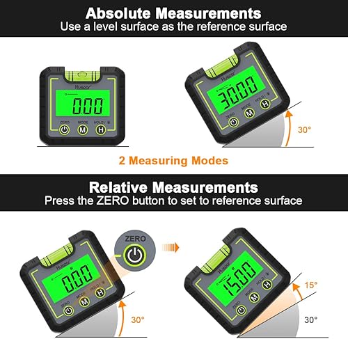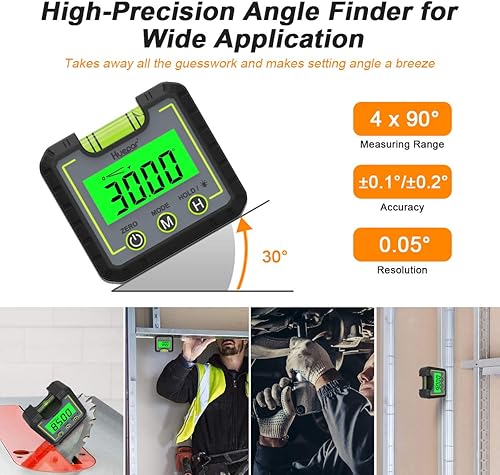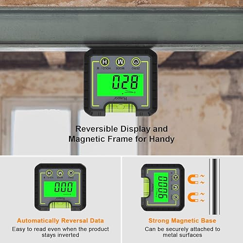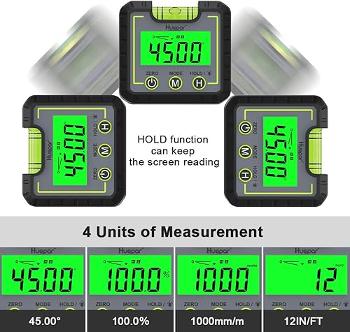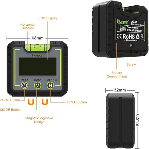 Huepar Digital Niveau Winkelmessgerät Mini Winkelsucher Level Box mit V-Nut Magnetfuß & Hintergrundbeleuchtung LCD Fasenlehre Neigungsmesser für Schreinerei, Baugewerbe, Automobilbau, -0~360° AG01