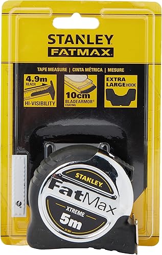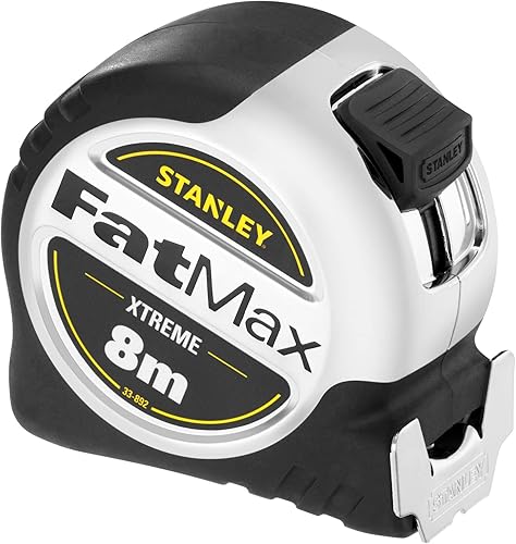 Stanley FatMax PRO Bandmass Blade Armor 0-33-892 (8 m Länge, 32 mm Breite, Genauigkeitsklasse II, mit Feststeller & Mylar-Schutzsicht, automatischer Rücklauf, schlagfestes Gehäuse, Gürtelclip)