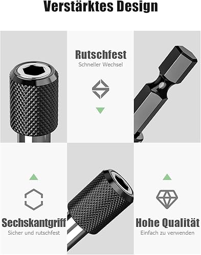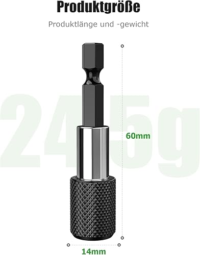 Bithalter Magnetisch, 3 Stück Mellbree Schnellwechsel Bithalter 1/4'' 60mm Bithalter Magnet Geeignet für Bohrmaschine Schraubendreher Gewindeschraube von Makita, Metabo, Bosch, Dewalt