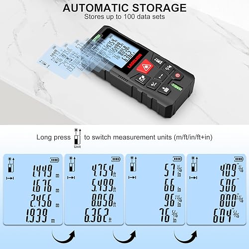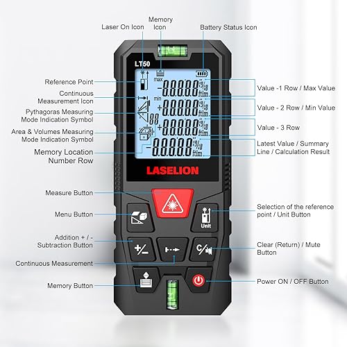 LASELION LT70 Laser-Entfernungsmesser – 70m Reichweite, Hohe Genauigkeit, Mehrere Messmodi, Eingebaute Wasserwaage und Stummschaltungsfunktion