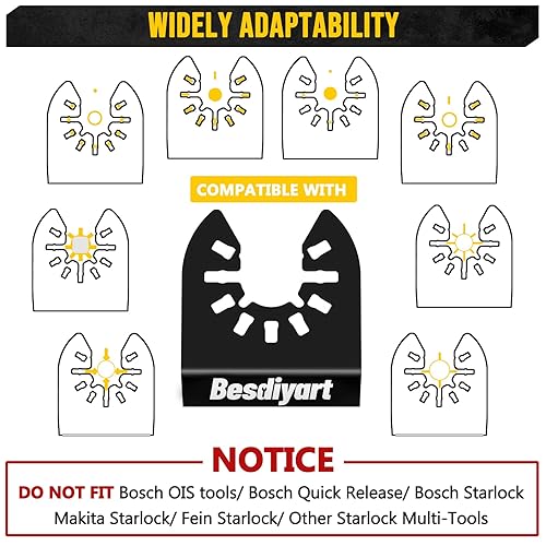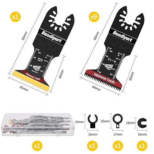 Besdiyart 10 Stück Gebogene Oszillierende Sägeblätter, Titan-Beschichtung 45mm Breite Multi-Tool Sägeblätter mit Japanischen Zähnen für Holz, Universal Quick-Lock Multi-Tool Zubehör