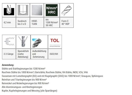 BaerCoil BAER UNiTap HSSE-TiAIN Maschinengewindebohrer Form C 40° RSP - M 5 x 0,8 - DIN 371 - Gewindeschneider Sackloch Gewindebohrer - Bohrer universal