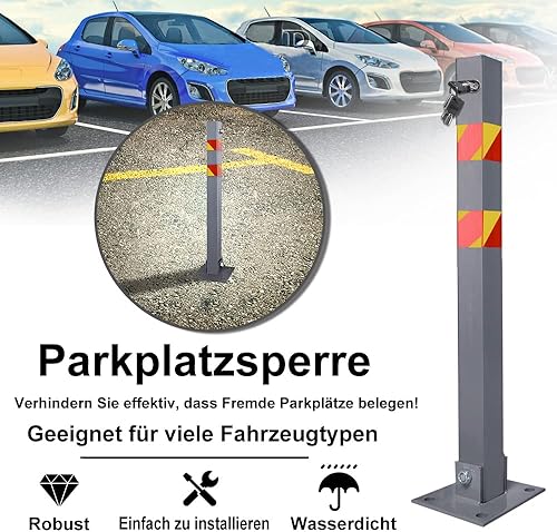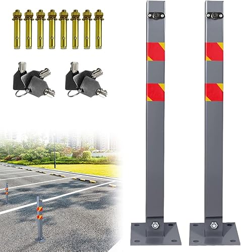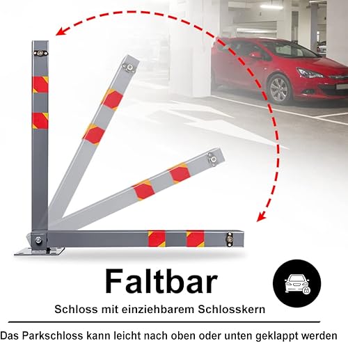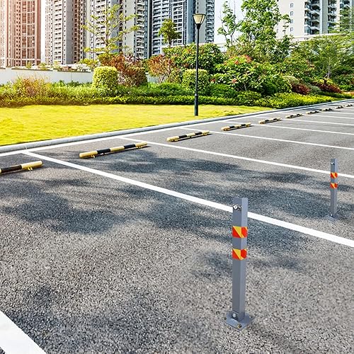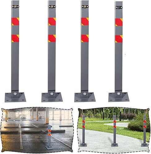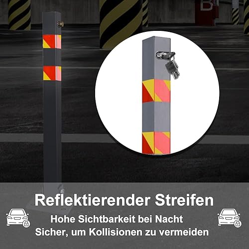 Aufun Parkplatzsperre Klappbar mit 3 Schlüssel und Warn Reflexstreifen, 65cm Parkpfosten Stahl Robust Standfuß Stabil Park Poller Set (4 Stück)