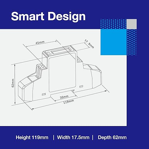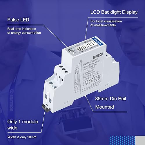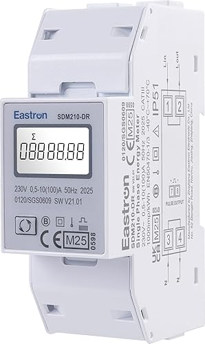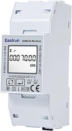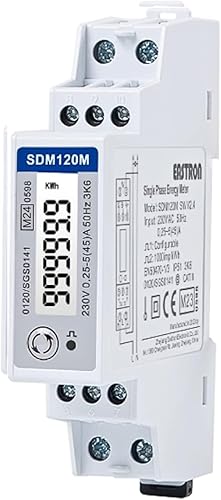 Wechselstromzähler [SDM120] digitaler 1 Phasen Stromzähler für Hutschiene (1TE) mit LCD und S0 für bis zu 45A direkter Messung bei 230V (SDM120DB - MID2023)