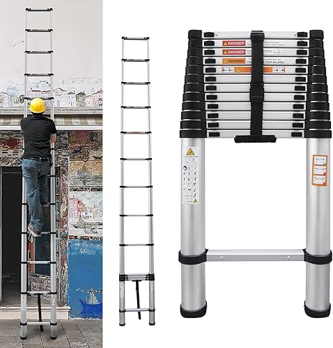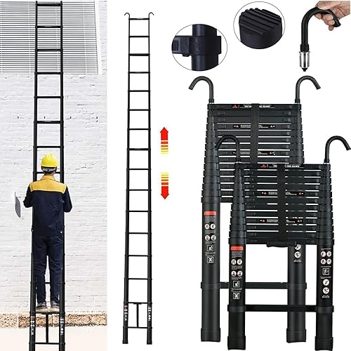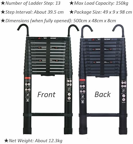 16,5Ft Aluminium Teleskopische Verlängerungsleiter 5M Ausziehbare faltende Mehrzweck-Schritt-Leiter A-Rahmen Leichte Leiter mit Stützstange Anti-Rutsch EN131 Zertifiziert (2,5m + 2,5m)