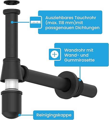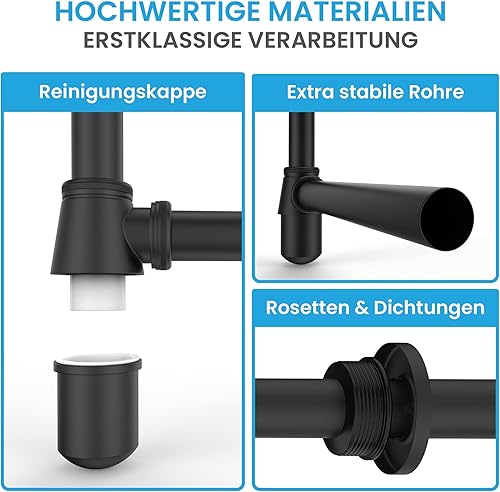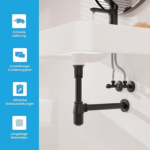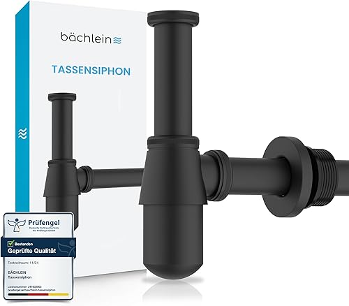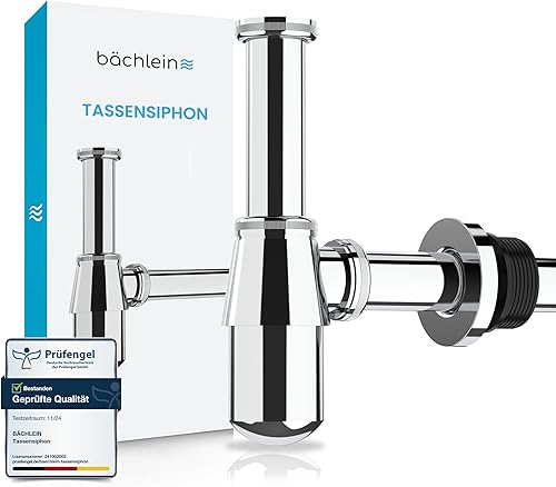 Bächlein Tassensiphon Universal für Waschbecken & Waschtisch (Chrom), Geruchsverschluss mit Reinigungsöffnung + Einbauanleitung - Designsiphon Ablaufgarnitur Flaschensiphon