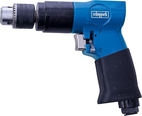 Scheppach Druckluft-Bohrmaschinen-Set | Betriebsdruck max. 6,3 bar | Drehzahl max. 1800 U/min | inkl. 10 x HSS Bohrer, 6x CrV Bits & 1x Bithalter