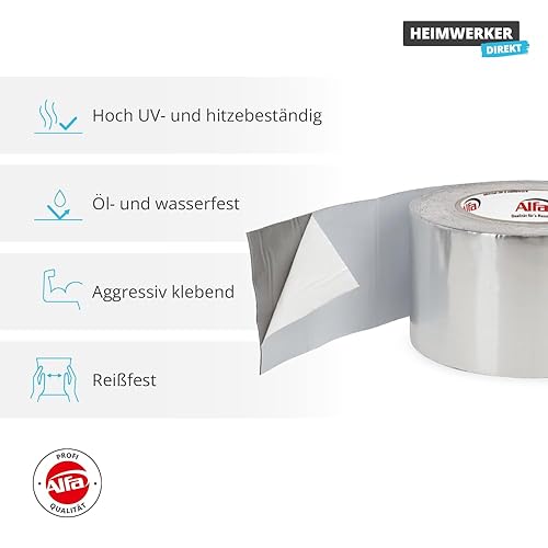 1x Alfa Alu- kaschiertes Butylklebeband 75 mm x 10 m wetterfestes Dichtungsband für ein dauerhaftes Abdichten von Dachanschlüssen Stößen und Wohnwägen