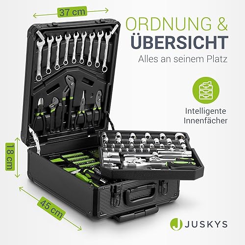 Juskys Werkzeugkoffer - 1200 teilig Werkzeug, Werkzeugtrolley gefüllt, Werkzeugkiste, Set, Rollen