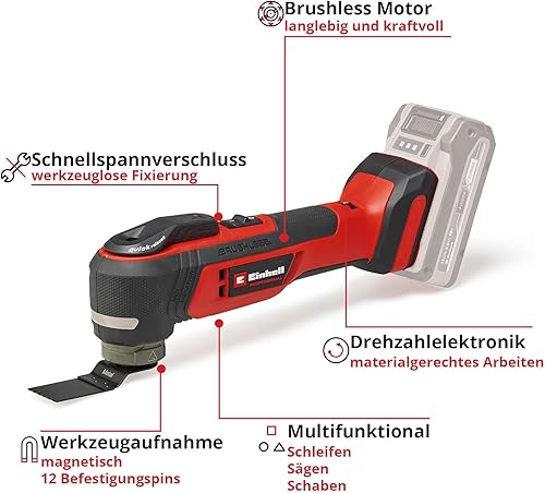 Einhell Professional Akku-Multifunktionswerkzeug TP-MG 18 Li BL-Solo Power X-Change (18 V, 3 Funktionen, magnetische Werkzeugaufnahme, inkl. Zubehör, ohne Akku)