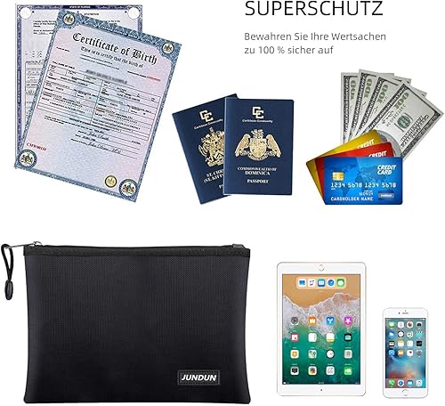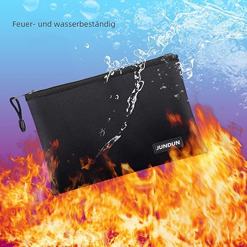 JUNDUN Feuerfeste Dokumententasche(36x26cm 4200℉), Feuerfeste Geldtasche, Tresor Feuerfest Wasserdicht Geldscheine Aufbewahrung Aktentasche Für Dokumente/Geld/Passport/Bankdatei Und Bargeld