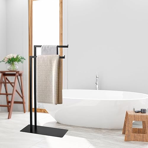 Handtuchhalter Stehend Handtuchständer freistehend Schwarz Handtuchhalter ohne Bohren Badetuchhalter Handtuchstange Halter für Dekoratives Badezimmer, Wohnzimmer, Küche