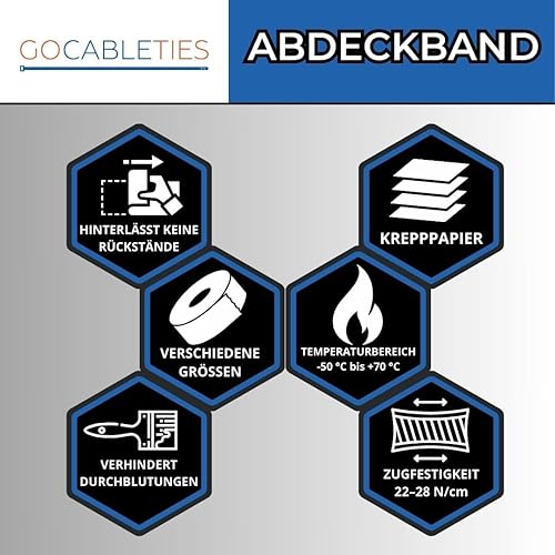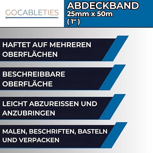 GOCABLETIES - Kreppband Doppelpack - 50 mm x 50 m - Malerkrepp zum Oberflächenschutz beim Streichen - lösemittelfreier Kleber - 2 Rollen