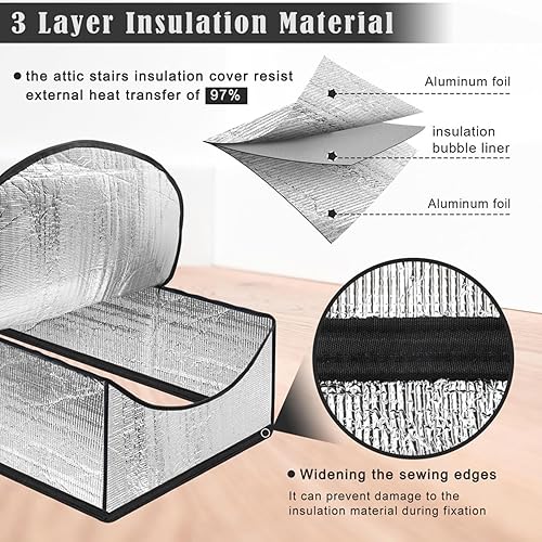 Dachluke Isolierung Dachboden Treppen Isolierabdeckung, 138x65x38cm Dachbodentreppen Isolierung Abdeckung Wärmedämmung Iuftpolster, Aluminiumfolie Feuerfest Wasserdicht