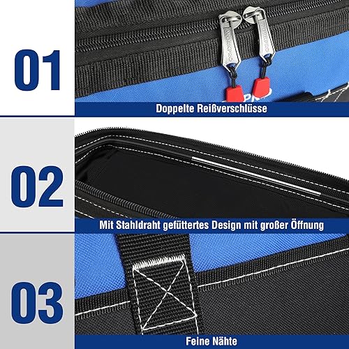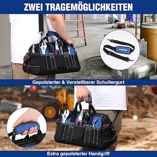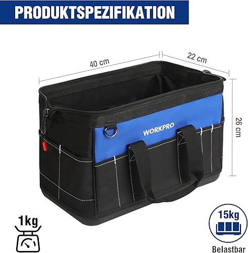 WORKPRO Werkzeugtasche Elektriker Wasserdichte Werkzeugtasche Profi, weite Öffnung & große Kapazität 40CM/16' aus 600D Polyester, Schultergurt verstellbar, Multifunktion für Heimwerker Handwerker