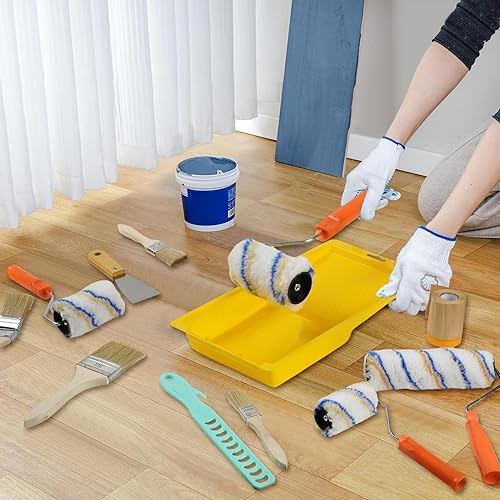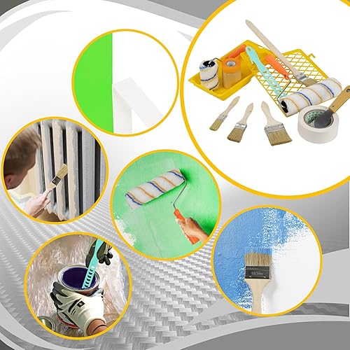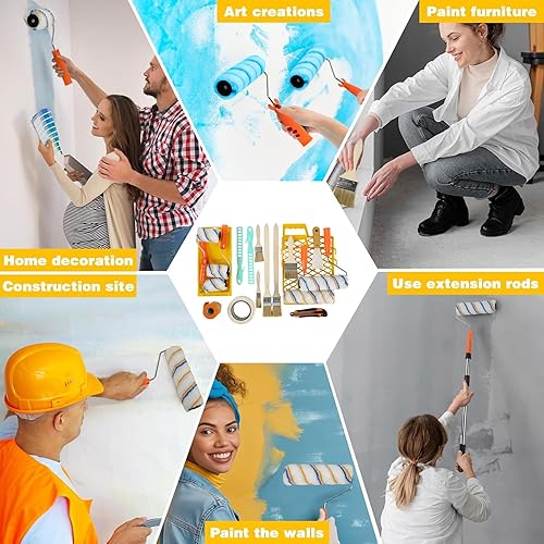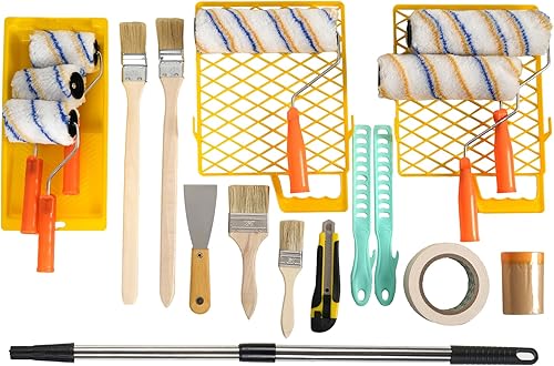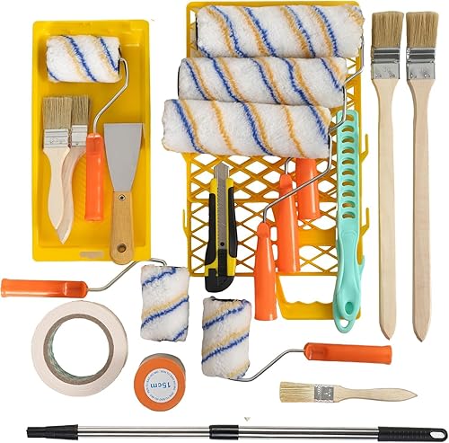QILICZ Komplettes Malerset für Anstrich von Wand und Decke Farbroller Pinsel Abdeckfolie Klebeband Teleskopstange und praktische Helfer