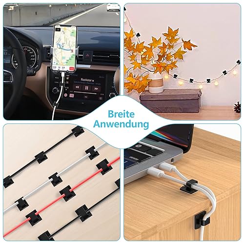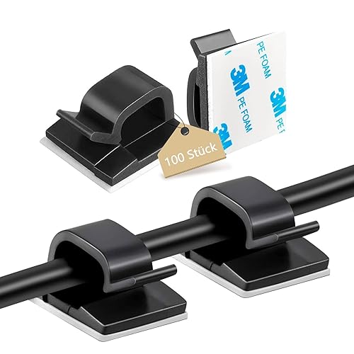 Abnii 100 Stück Kabelhalter Selbstklebend, Kabelclips Schreibtisch für Kabelklemmen Kabelbefestigung Kabelführung Organizer Haken Draht Halter für Kabelmanagement Lichterkette, Groß 3M Kleber