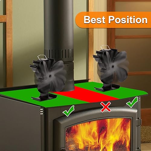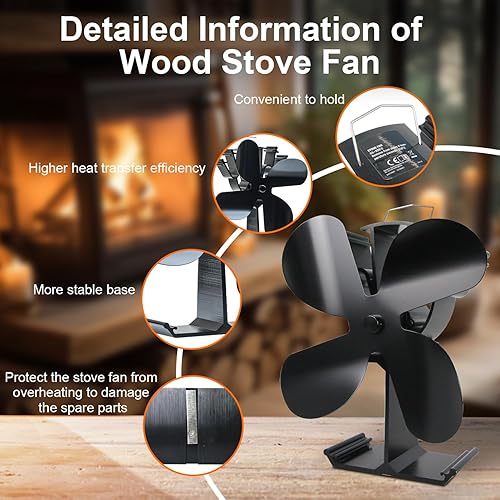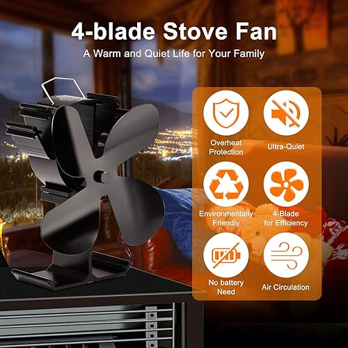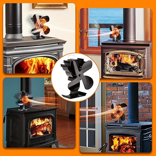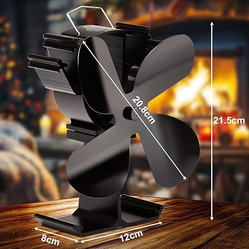 Wärmebetriebener Ofen-, Kaminventilator und Thermometer, Kombination für Kamin, Holzscheitbrenner, mit 4 Flügeln