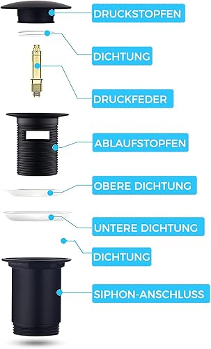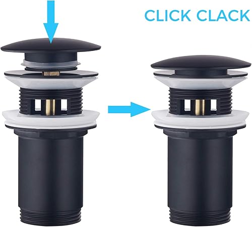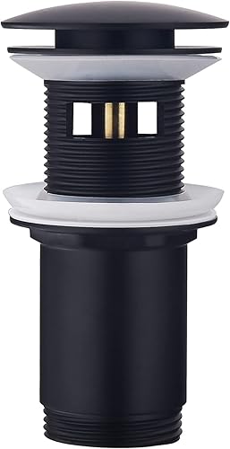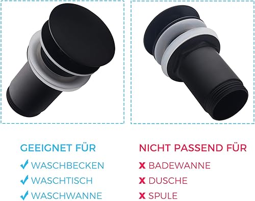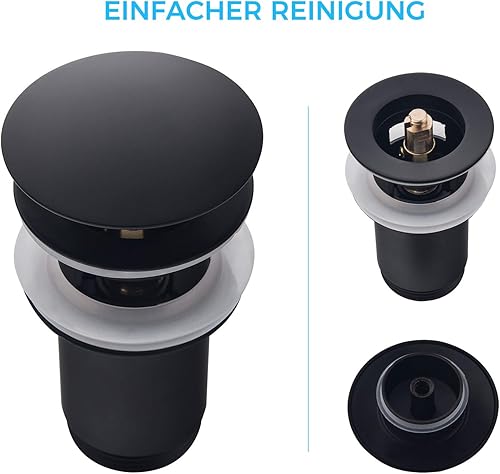 Ablaufgarnitur ohne Überlauf Schwarz Matt - Keymark Universal Ablaufventil Abflussgarnitur für Waschbecken & Waschtisch - Messing Pop Up Ablauf Abfluss Stöpsel