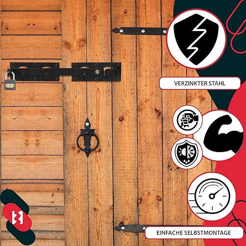 KOTARBAU® Doppeltorüberwurf Links Rechts mit Vorhängeschloss Gartendoppeltor-Überwurf Torriegel Torverschluss Schlagladenüberwurf Torverrieglung Riegel