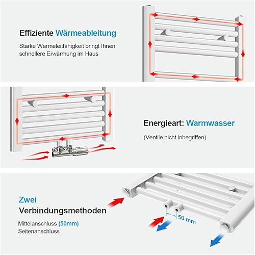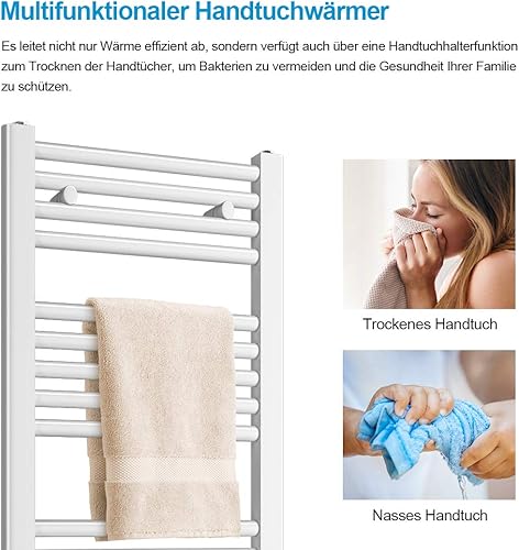 Heilmetz® Weiß Badheizkörper 40 x 160 cm Handtuchtrockner 547 Watt Leistung Heizkörper Bad Mittelanschluss Handtuchheizkörper