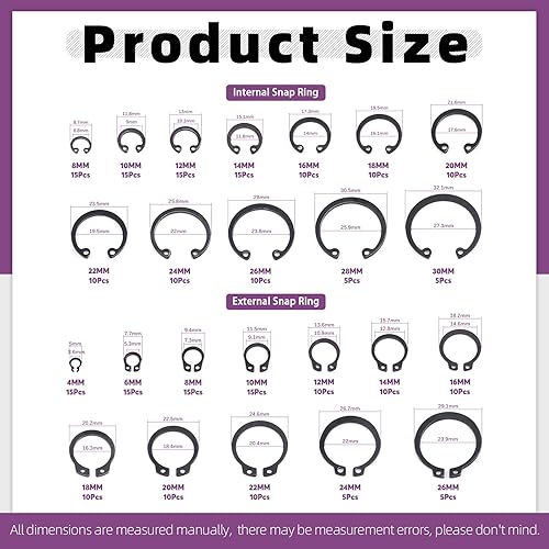 Swpeet 262 Stück 4-in-1 Sprengringzange mit 6 Größen 4 mm bis 30 mm Legierung Stahl Außen-Halterungsringe Interner Sicherungsring Schnapphalter Clip Ring Sortiment Kit
