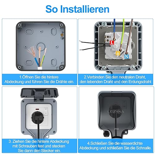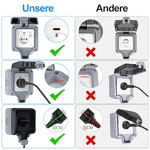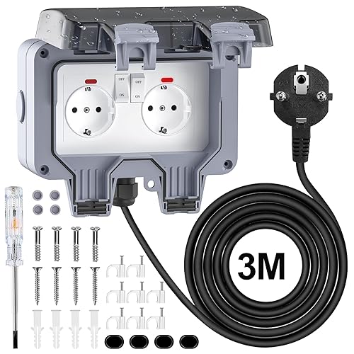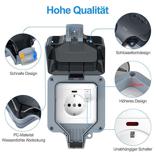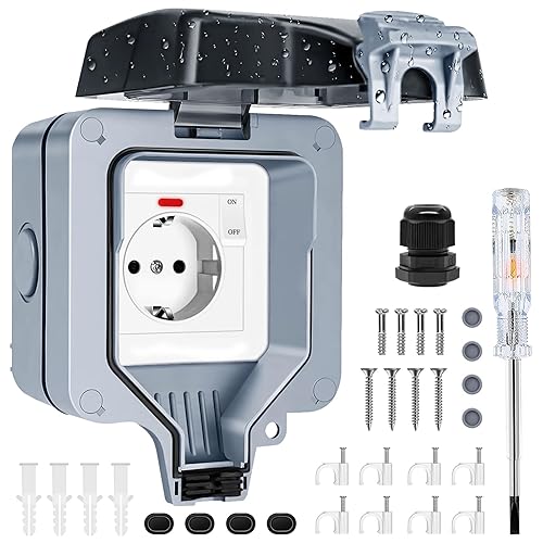 Außensteckdose Steckdose IP66 Wasserdicht Steckdose mit Schalter Kontrollleuchte, Wandsteckdose Feuchtraum Aufputz Schutzkontakt Gartensteckdose Staubdicht Wetterfest Outdoor Steckdose mit Klappdeckel
