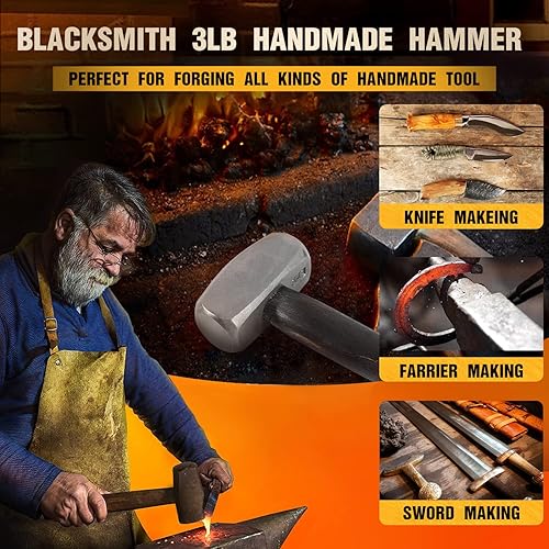 Blacksmith Schmiedehammer, handgefertigt, 1,4 kg, für Transport, Messer, Schmiedewerkzeug